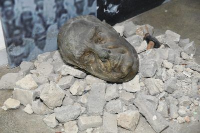 En la sala de la Era de Trujillo, el espacio incluye un maniquí con un traje original del dictador, su máscara funeraria, invitaciones a su sepelio y artículos de su perfumería personal.