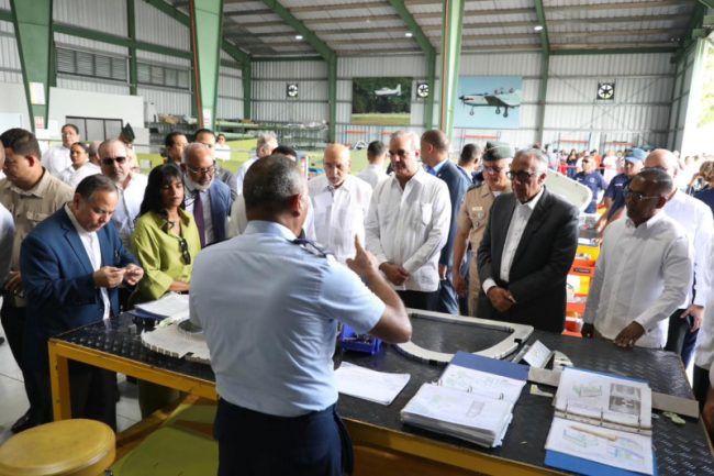 El presidente Luis Abinader supervisó el área de ensamblaje de los aviones militares TP-75 Dulus, que realiza la Fuerza Aérea de República Dominicana (FARD), y recorrió la ampliación de la pista de aterrizaje de emergencia de la Base Aérea de San Isidro, lo que convertiría la estación militar en un aeropuerto alterno.