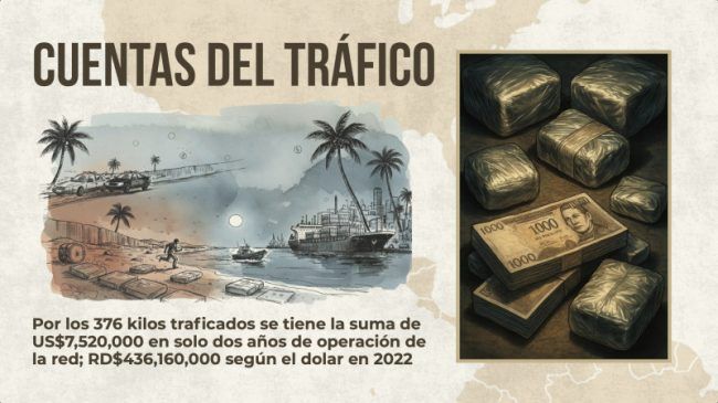 Si se toma el número menor y se multiplica por los 376 kilos traficados, se tiene la suma de US$7,520,000 en solo dos años de operación de la red. Unos RD$436,160,000 según la tasa del dólar promedio de ese año.