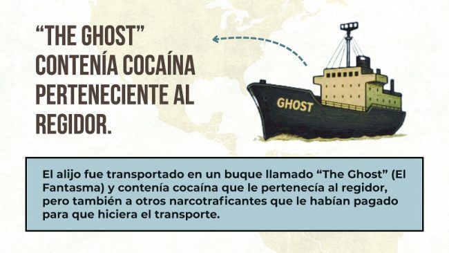 El alijo fue transportado en un buque llamado “The Ghost” (El Fantasma) y contenía cocaína que le pertenecía al regidor, pero también a otros narcotraficantes que le habían pagado para que hiciera el transporte.
