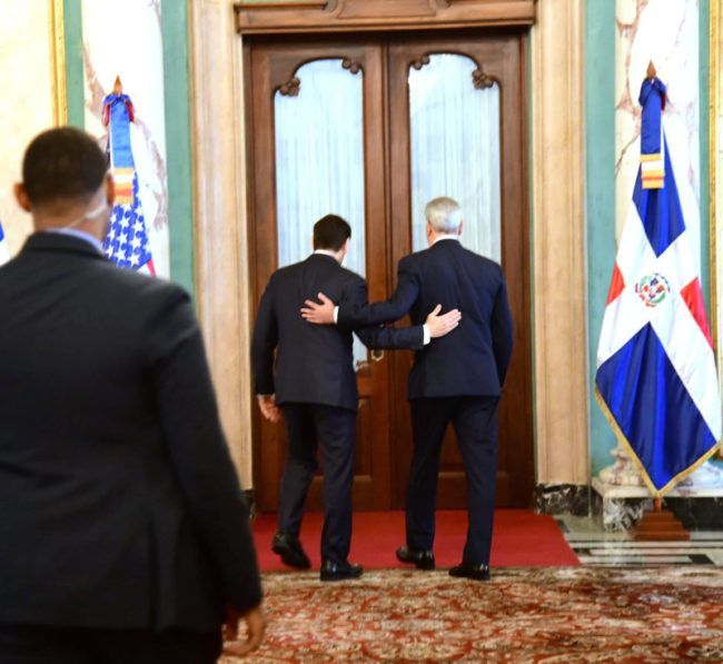 El funcionario tuvo una reunión en privado con el jefe del Estado en el Salón Blanco de la casa presidencial y, luego, sostuvo un almuerzo de trabajo. Los temas centrales fueron: la cooperación en seguridad, migración, comercio, Haití, y la lucha contra el narcotráfico.