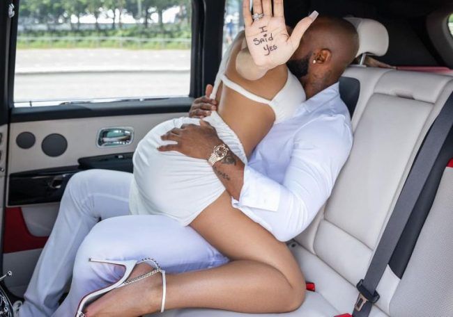 Mientras que, en una segunda fotografía la pareja tiene sus manos unidas sobre el capó de un automóvil Rolls Royce con la frase escrita “ella dijo que sí”, pero esta vez en la palma de Marte.